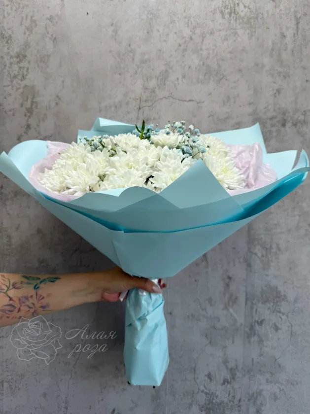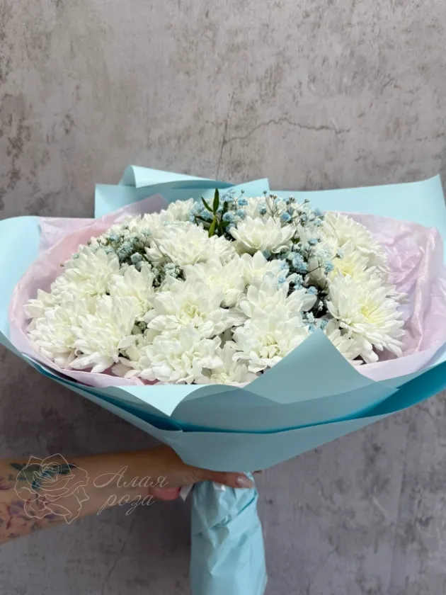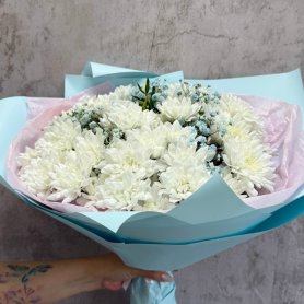 Монобукет из белых кустовых хризантем
