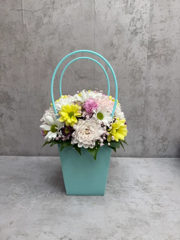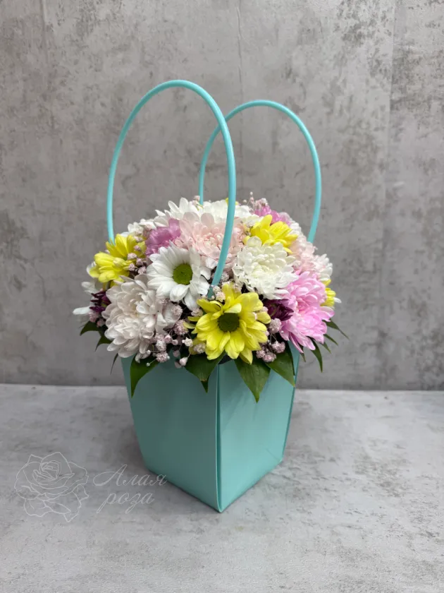Хризантема в берюзовой сумке