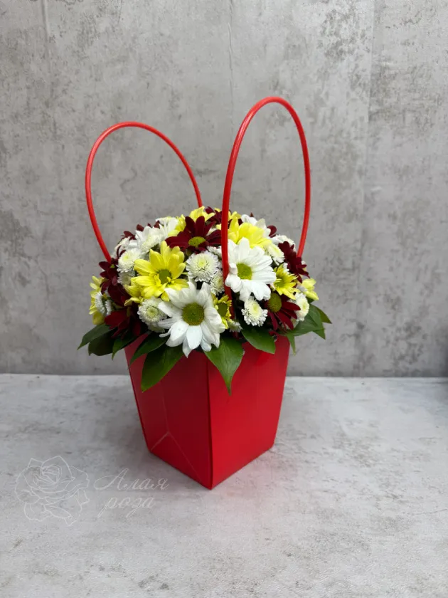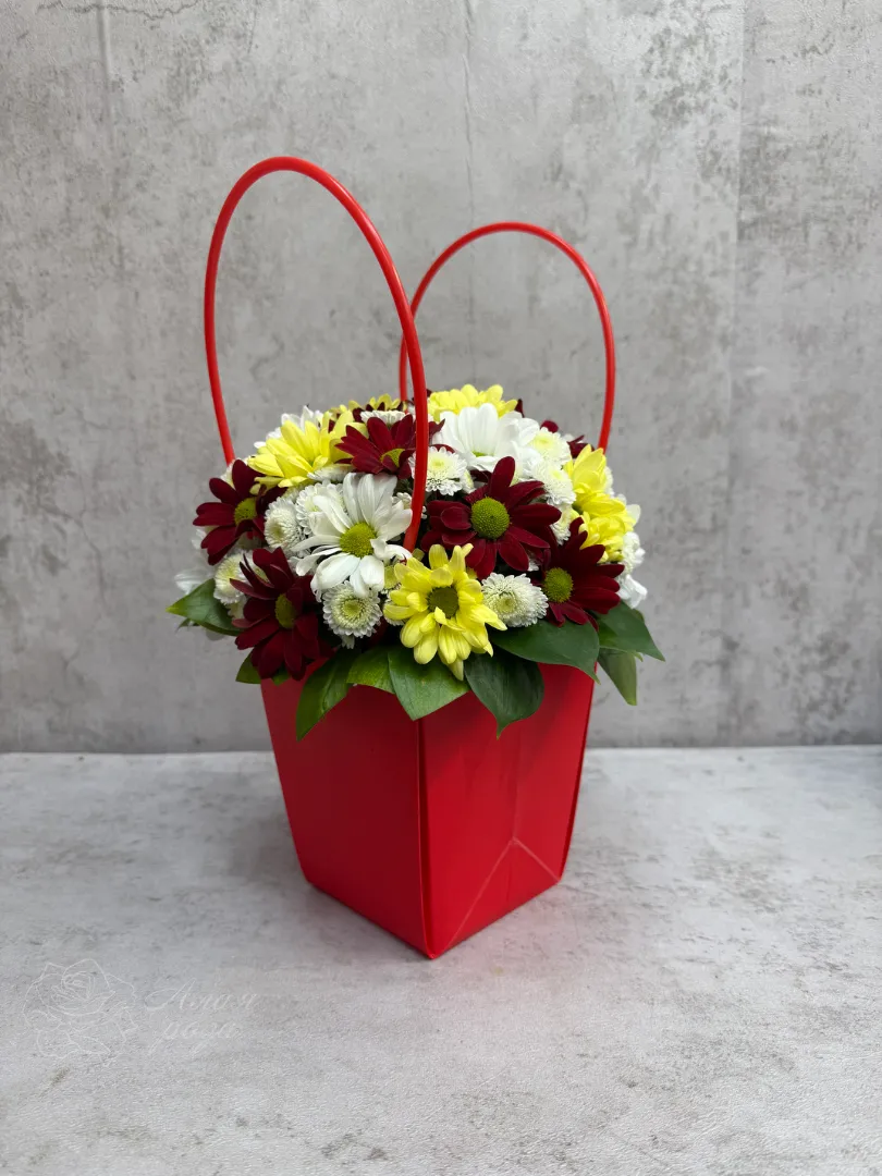 Хризантема в красной сумке